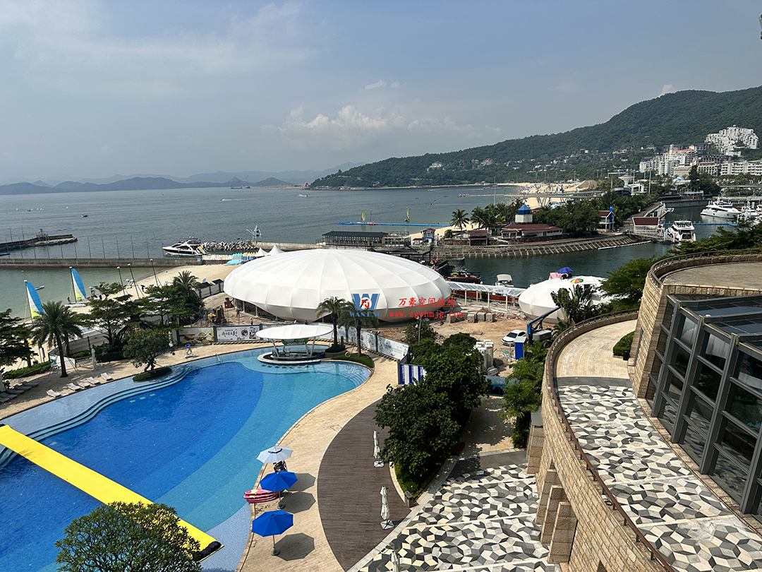 京基大梅沙酒店多功能活動廳鋼膜結構工程,該項目用鋼量約240噸,ETFE膜+PTFE膜展開面積約2834平米。