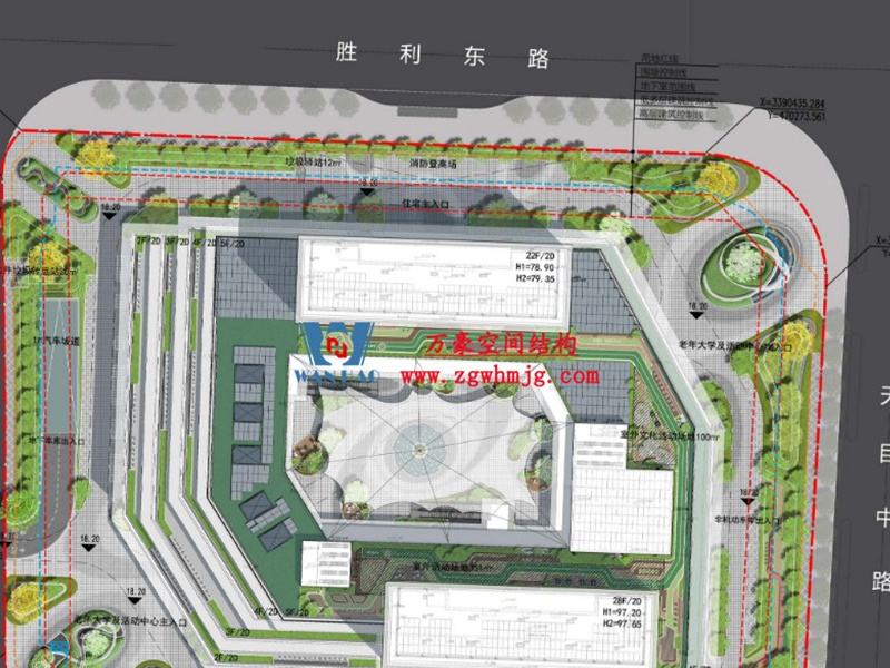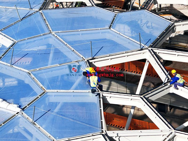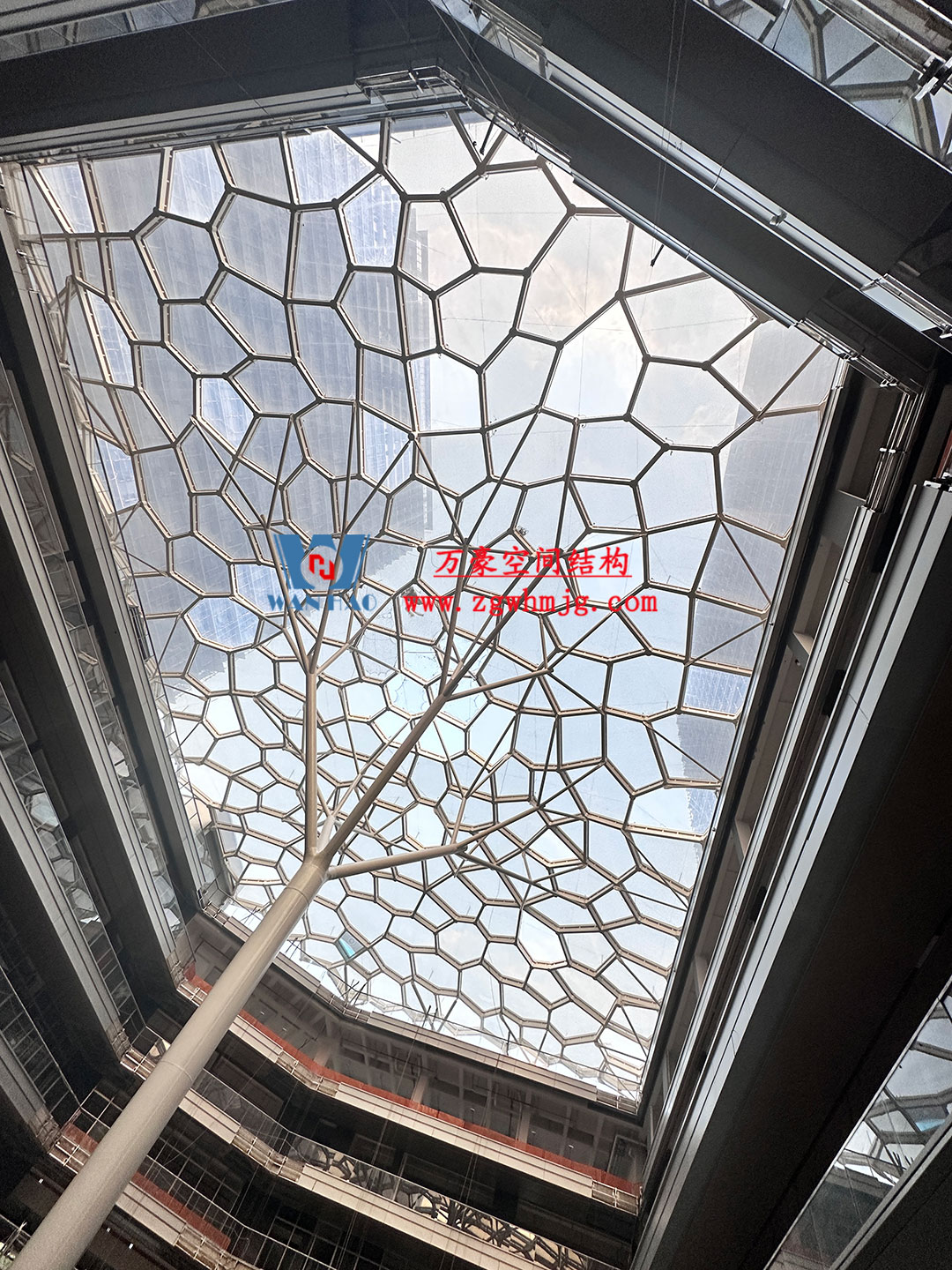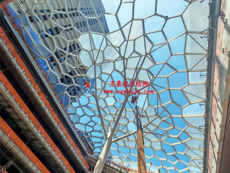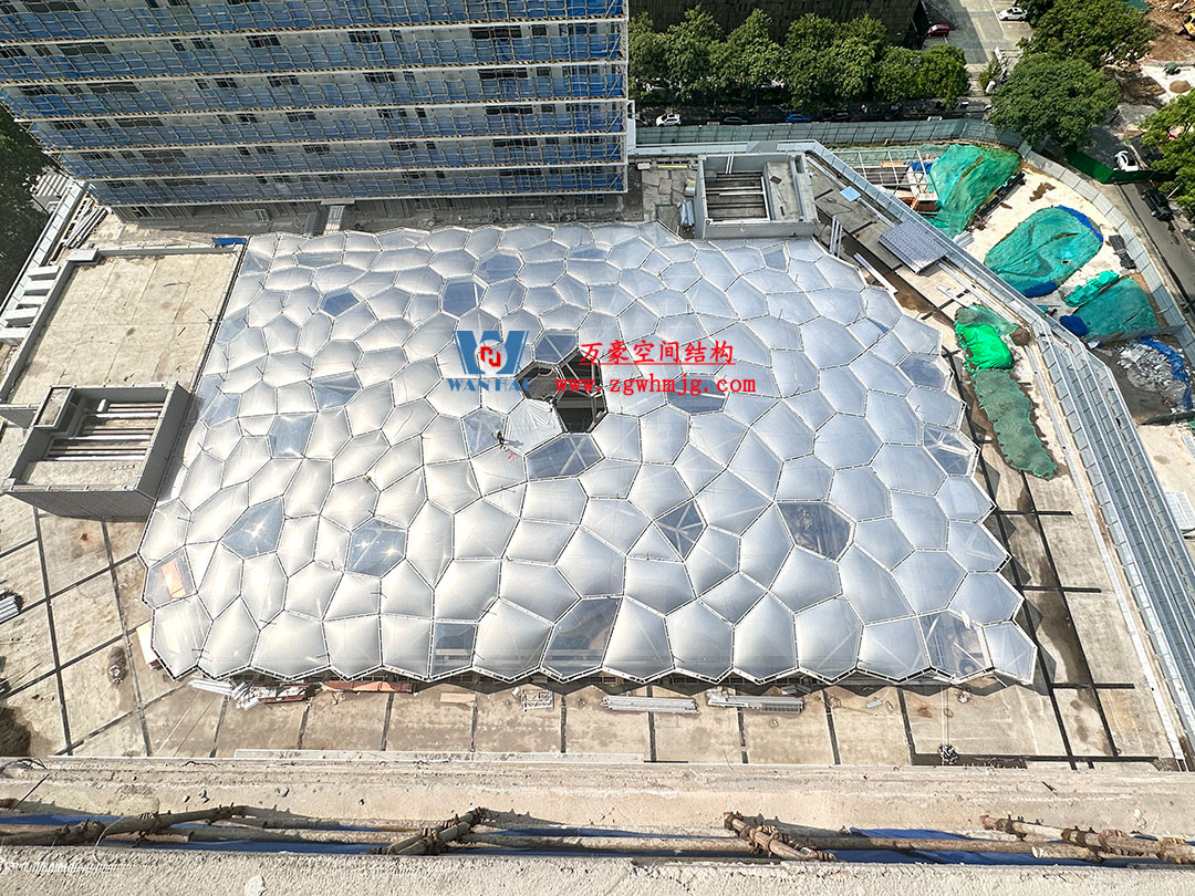 安吉縣昌碩小區地塊房產開發項目鋼結構天幕項目,該項目用鋼量約260噸,ETFE膜展開面積約3182平米。