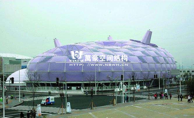 1. 骨架式膜結(jié)構(gòu)體育館:此類膜結(jié)構(gòu)是固定在精致鋼材、空間桁架或其他堅(jiān)固的構(gòu)架上,稱之為骨架式膜結(jié)構(gòu)體育館。
