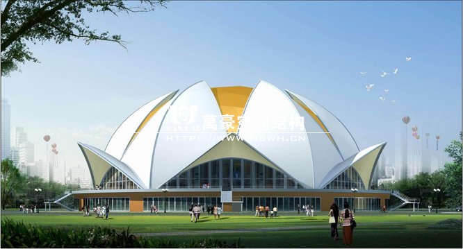 膜結(jié)構(gòu)體育館張力結(jié)構(gòu)自重小的原因在于它依靠預(yù)應(yīng)力形態(tài)而非材料來(lái)保持結(jié)構(gòu)的穩(wěn)定性。