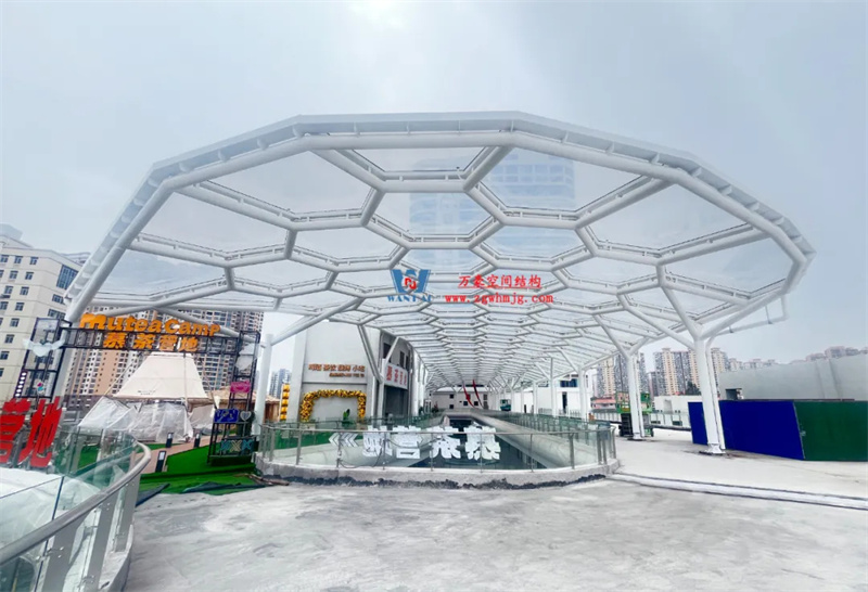 廣州茂名總匯天街商業(yè)街ETFE膜結(jié)構(gòu)工程地處電白市區(qū)繁華CBD路段,毗鄰電白萬(wàn)達(dá)廣場(chǎng),2萬(wàn)平方城市購(gòu)物中心化商業(yè)街區(qū),配套星級(jí)酒店及地下智能停車場(chǎng)。該項(xiàng)目ETFE膜結(jié)構(gòu)展開(kāi)面積約為2000平方米。