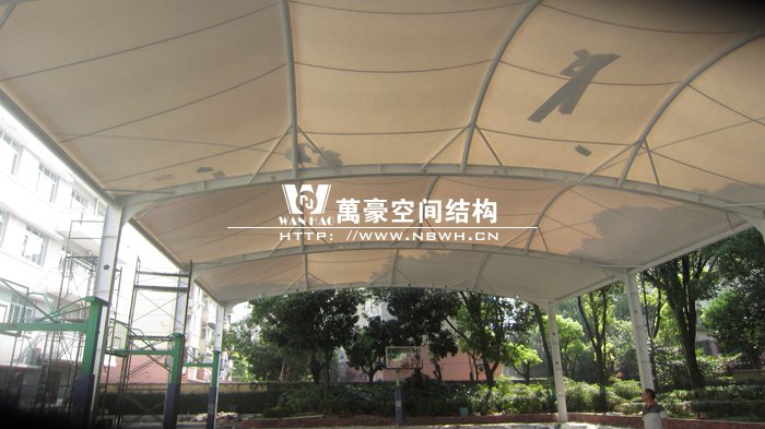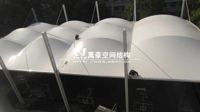 本項(xiàng)目位于上海閔行區(qū)第五中學(xué)內(nèi),球場(chǎng)采用膜結(jié)構(gòu)蓋頂。