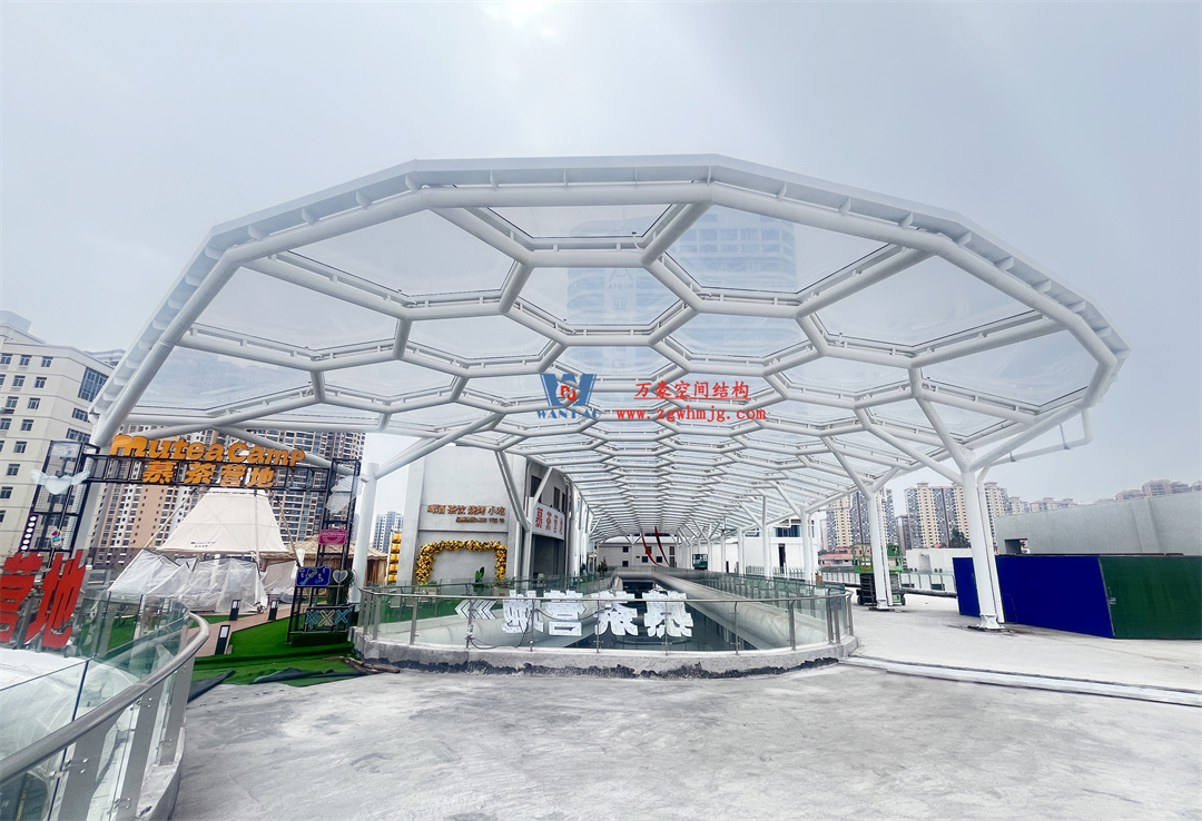 我們步入一座購物中心,目光所及早已不再局限于商品陳列與促銷活動,往往更容易被精心設(shè)計的空間場景所吸引。從自然生態(tài)到IP展覽,從主題街區(qū)到光影藝術(shù),這些特色場景都在重新定義人與空間的連接方式,也賦予了膜結(jié)構(gòu)商業(yè)天幕更多的探索價值。