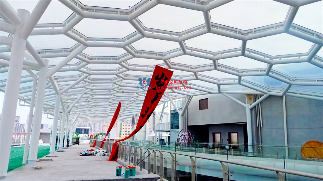 在經(jīng)過現(xiàn)場施工團隊不斷加班加點搶工期,項目建設(shè)進度也進入尾聲,ETFE氣枕膜結(jié)構(gòu)也即將安裝完成,又一造型獨特、性能卓越的膜結(jié)構(gòu)天幕即將呈現(xiàn)在大眾眼前,成為城市的一道亮麗風景線。
