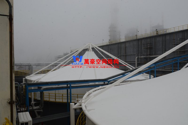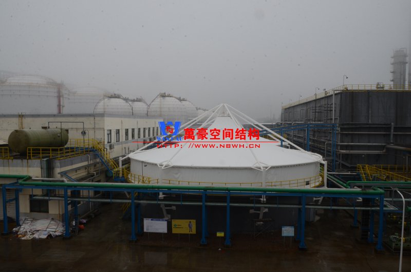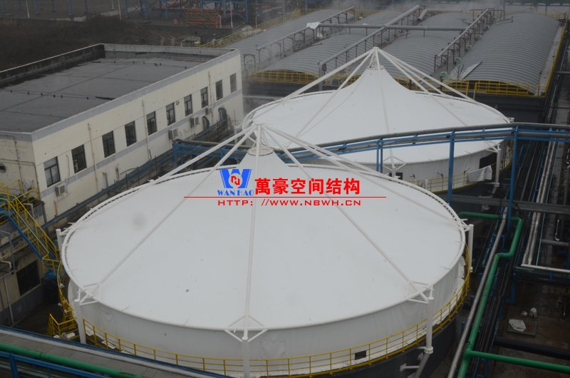平湖衛(wèi)星石化污水廠膜結(jié)構(gòu)加蓋密封系統(tǒng)工程項目膜結(jié)構(gòu)展開面積2000平米,用鋼量35噸,由寧波萬豪空間結(jié)構(gòu)工程有限公司承建。